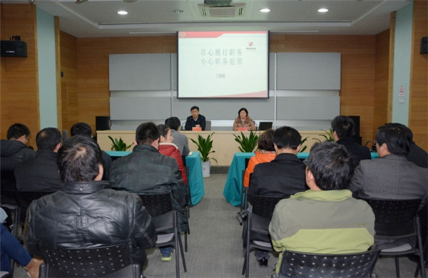 12月26日,開(kāi)發(fā)公司邀請(qǐng)宿城區(qū)檢察院預(yù)防職務(wù)犯罪科科長(zhǎng)王麗娟作《盡心履行職務(wù),小心職務(wù)犯罪》專(zhuān)題講座,園區(qū)黨工委委員、管委會(huì)副主任、開(kāi)發(fā)公司總裁陸志剛參加講座。