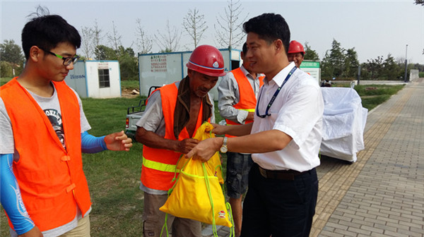 7月28日下午,開(kāi)發(fā)公司副總裁劉建華帶領(lǐng)公司相關(guān)部門(mén)負(fù)責(zé)人來(lái)到公司代建項(xiàng)目工地,現(xiàn)場(chǎng)慰問(wèn)了奮戰(zhàn)在高溫一線的企業(yè)員工和建筑工人,并親自給他們遞上了毛巾、肥皂、清涼油等防暑降溫物品。