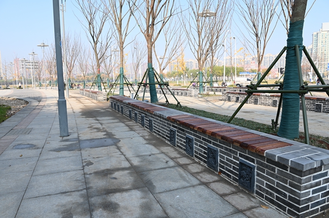 此次針對蘇州公園東北角處進行重新栽植18株20CM的彩葉樹種的櫸樹和日本矮麥冬進行栽植,同時為迎合蘇州街西入口整體景觀效果相協(xié)調,增加更具“蘇式”韻味景觀長條形式的坐凳滿足周圍居民生活休閑。