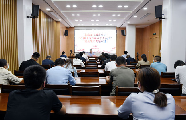 為深入習(xí)近平總書記關(guān)于安全生產(chǎn)的重要論述和指示批示精神、安全生產(chǎn)“十五條”硬措施、新《安全生產(chǎn)法》以及安全生產(chǎn)大檢查、重點(diǎn)行業(yè)領(lǐng)域安全生產(chǎn)百日攻堅(jiān)行動(dòng),認(rèn)真落實(shí)全省“百團(tuán)進(jìn)百萬企業(yè)千萬員工”安全生產(chǎn)宣講活動(dòng)的安排部署。9月23日下午,宿遷市蘇宿工業(yè)園區(qū)城市發(fā)展投資有限公司董事長(zhǎng)劉建華作安全生產(chǎn)專題宣講。