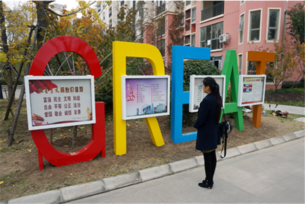 紅黃藍(lán)綠橙,多彩的字母組成英文單詞“GREAT”,中間鑲嵌四個(gè)方形宣傳框,今年社區(qū)在明日星城和恒大綠洲小區(qū)試點(diǎn)放置兩個(gè)宣傳欄。居民看著社區(qū)移走小區(qū)大門(mén)口的多個(gè)移動(dòng)立牌,放置這樣的宣傳欄紛紛點(diǎn)贊。這次設(shè)立“GREAT”立體廣告牌,不僅美化了小區(qū)環(huán)境,走起了國(guó)際范,還有著特殊的意義,“GREAT”具有美好向上的意思,社區(qū)希望提倡積極生活、追求美好的社區(qū)文化。