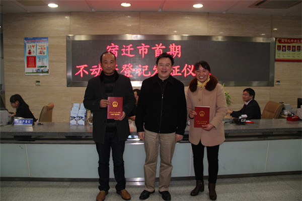 市國土局局長趙昌說:“園區(qū)不動產(chǎn)登記走在全市前列,今天宿遷市首期不動產(chǎn)權(quán)證書的正式頒發(fā),標志著不動產(chǎn)統(tǒng)一登記制度在園區(qū)范圍內(nèi)全面啟動?!?