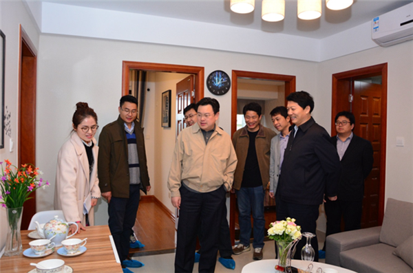 4月6日下午,副市長、園區(qū)黨工委書記、管委會主任方文浜現(xiàn)場調(diào)研“夢家園·融園”售樓處、樣板房,工委領(lǐng)導戈亮及相關(guān)局辦、公司負責人陪同調(diào)研。